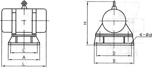 防閉塞裝置由振動電機、底座兩部分組成。振動電機和底座由螺栓緊密地固定為一體,由于底座堅固地安裝在料倉壁上,這樣就構(gòu)成了單質(zhì)點定向強迫振動系統(tǒng)。