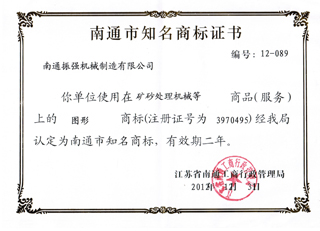 江蘇振強(qiáng)機(jī)械科技股份有限公司 >> 公司簡(jiǎn)介 >> 資質(zhì)證書 >> 南通市知名商標(biāo)證書